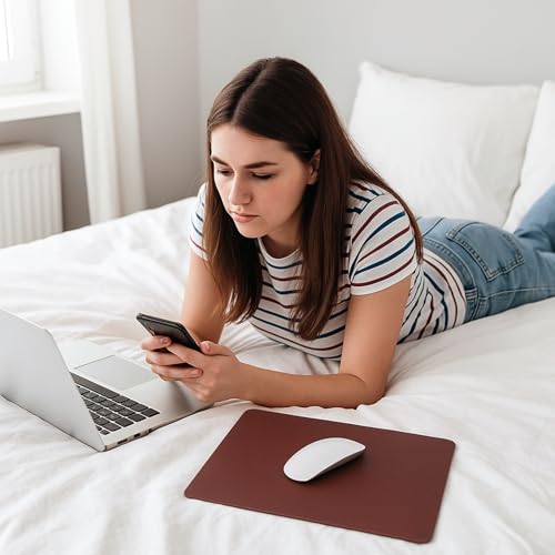 1 Schritt Leder Mousepad,260 x 210 mm Gaming Mousepad,Leder Mauspad Rutschfest und Wasserdicht,zugunsten PC-Büro,Artikel,Gaming,Studium,Laptop,Computer(Dunkelbraun)