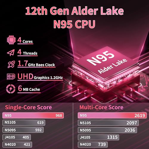 【Leistungsstarker N95 Quad-Core-Prozessor】 Profitieren Sie von der blitzschnellen Leistung des N95 Ultra-Fast-Prozessors, der mit beeindruckenden 1,7 GHz bis 3,4 GHz getaktet ist, zusammen mit UHD Graphics 600. Genießen Sie reibungsloses Multitasking ohne Verzögerungen, selbst wenn mehrere Anwendungen gleichzeitig ausgeführt werden. Ununterbrochenes Streaming und Arbeitserlebnisse mit zuverlässiger 5G-Wi-Fi- und Bluetooth 4.2-Konnektivität, sowohl zu Hause wie vulgo unterwegs.