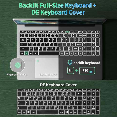 【Vielseitige Anschlüsse】 Bietet eine Differenziertheit von Anschlüssen, darunter 3x USB 3.0, HDMI, SD-Kartenleser und einen Kopfhöreranschluss. Die hintergrundbeleuchtete Tastatur und das präzise Touchpad machen die Bedienung auch bei schlechten Lichtverhältnissen einfach. Ein integrierter Fingerabdrucksensor sorgt für zusätzliche Sicherheit, während Dual-Band-WLAN und Bluetooth 4.2 stabile und schnelle Verbindungen garantieren