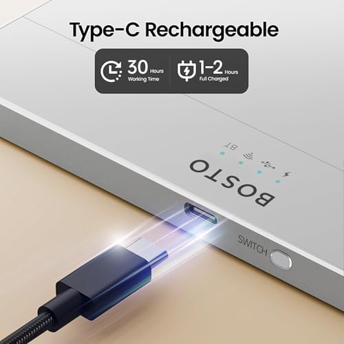 Langlebiger wiederaufladbarer Akkumulator: Mit dem eingebauten 500-mAh-Akkumulator kann das Trackpad nach 2-stündigem Laden bis zu 30 Stunden lang funktionieren. Dank des kabellosen Designs können Sie das Trackpad jederzeit und überall verwenden.