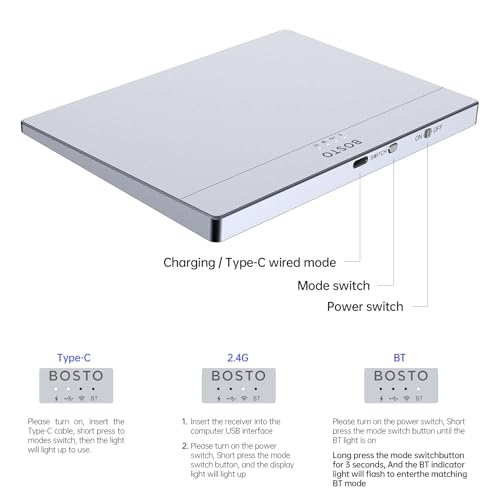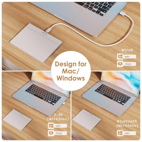 Trackpad Wireless für Mac Windows – Das T02 Trackpad unterstützt eine drahtlose 2.4-G-Verbindung mit Mac OS und Windows-Geräten. Aka Bluetooth-Verbindungen für Windows-Geräte werden unterstützt. (wenn Sie Bluetooth zur Verbindung mit einem MAC OS-Murl verwenden, kann das Trackpad die Multitouch-Bild nicht nutzen.)