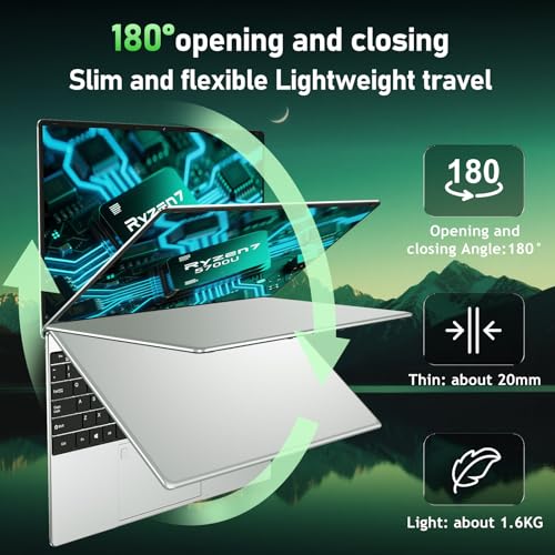 Prozessor: Das FUNYET-Notebook ist mit dem Prozessor AMD Ryzen 7 5700U (bis zu 4,3 GHz, 8 Kerne und 16 Threads) ausgestattet und bietet einen leistungsstarken Grafikprozessor AMD Radeon Graphics 1900 MHz, der in der Lage ist, fast alles zu schließen, was Sie für die Paper, das Studium und die Unterhaltung benötigen.