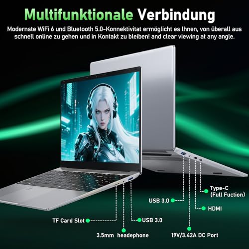 15,6„ FULL HD SCREEN: Tauchen Sie ein in ein visuelles Fest mit dem 15,6“ (1920 x 1080) Full HD Display des FUNYET Notebooks. Perfekt für Spiele, Filme und Videobearbeitung. Erleben Sie den Nervenkitzel von High-Abgrenzung-Spielen auf einem Bildschirm, der für intensive Action ausgelegt ist, und genießen Sie jedes Detail Ihrer Lieblingsfilme mit hervorragenden Farben. Ganz gleich, ob Sie Filme erstellen oder ansehen – dieses Notebook bietet eine visuelle Reise, die Sie faszinieren und begeistern wird.