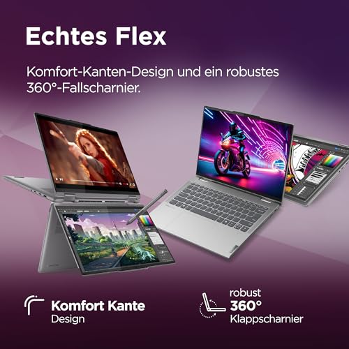 Lenovo Yoga 7 Convertible Laptop | 14″ WUXGA OLED Display | AMD Ryzen 5 8640HS | 16GB RAM | 512GB SSD | AMD Radeon Grafik | Windows 11 Home | QWERTZ | grau | 3 Monate Premium Care