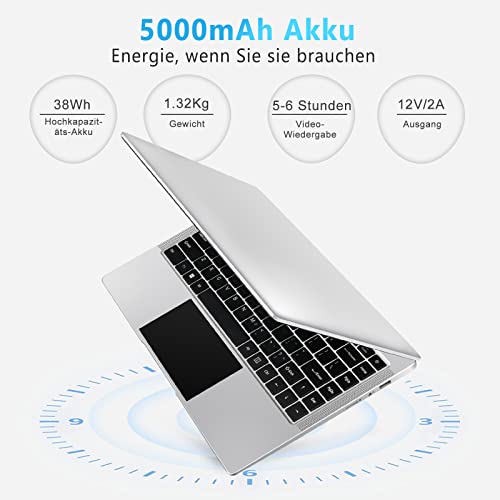 Konnektivität und Anschlüsse: 5000 mAh großer Akku, Standby-Betrieb bis zu 200 Stunden, 5-6 Stunden Videowiedergabe. Mit 2.4G+5G WiFi und Bluetooth 4.2, mit dualen USB3.0- und Mini-HDMI-Steckplätzen (Passstück erforderlich) ermöglicht dieses Win11-Notebook die Erweiterung mehrerer Geräte, eine schnelle drahtlose Übertragung und ein reibungsloses Netzwerk an jedem Ort, z. B. in einem Café, einer Bibliothek oder sogar auf Reisen.
