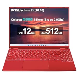 369,99 €Produkt kaufen2025 Gaming Laptop 16 Zoll Win11 12+512GB SSD Unterstützung 2TB(HDD-2TB) 1920×1200 Notebook 4-Core Celeron N5095 (bis 2.9GHz) Laptop mit Nummerntastatur WiFi Mini HDMI Deutscher Tastaturschutz-Rot